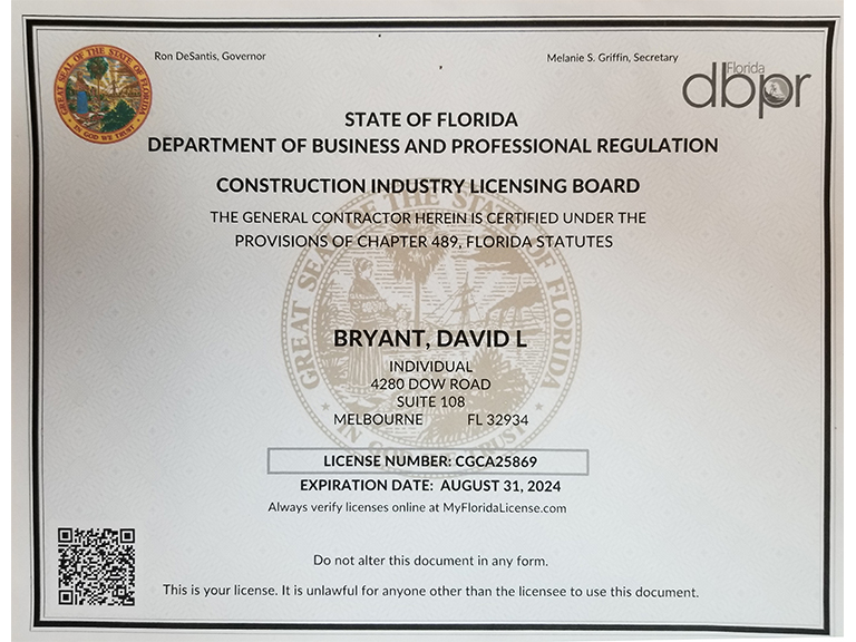 David L. Bryant, is a Registered Structural Engineer (FL Reg. #038154) and General Contractor (License #CGCA25869) in the State of Florida and owns and operates Certified Structure and Foundation, Inc.
