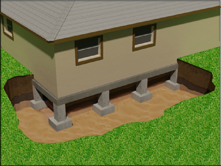 Many foundation settlement problems are due to lose soil located beneath the building foundations. Stabilization is the process of transferring the building weight (foundation loads) to deeper "stronger" soils capable of supporting the building. Methods of Stabilization include the construction of new shallow pier foundations, and drilled piers.