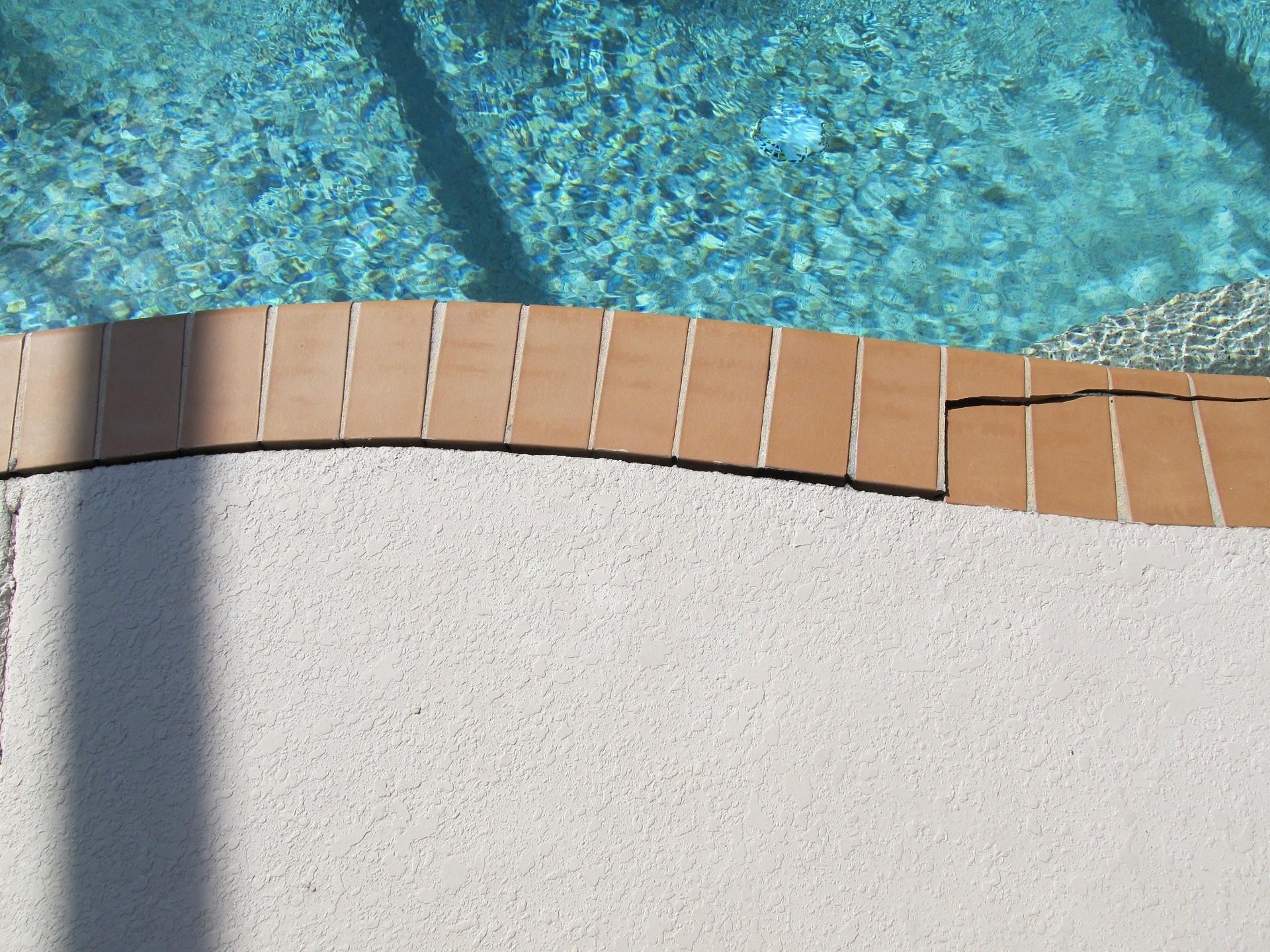 Concrete pool decks usually experience abnormal settlement and cracking because the soil beneath them was not properly compacted during construction. Most pool contractors are reluctant to mechanically compact the soil adjacent to the pool for fear of breaking the pool plumbing "return" lines that are buried around the perimeter of the pool. Over time this loose soil consolidates and ceases to provide adequate support for the pool deck, causing the deck to settle and crack.