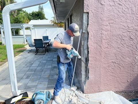 Rusting rebar and cracking block walls in the corners of your home is not a pretty sight! We can remove and replace the damaged rebar and pour new concrete corners with closely matching stucco.